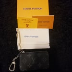 The Key Pouch in iconic Monogram canvas is a playful yet practical accessory that can carry coins, cards, folded bills and other small items, in addition to keys. Secured with an LV-engraved zip, it can be hooked onto the D-ring inside most Louis Vuitton bags, or used as a bag or belt charm.